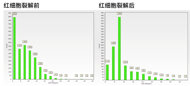 图3 利用红细胞裂解试剂盒处理单细胞悬液前后样本细胞直径分布